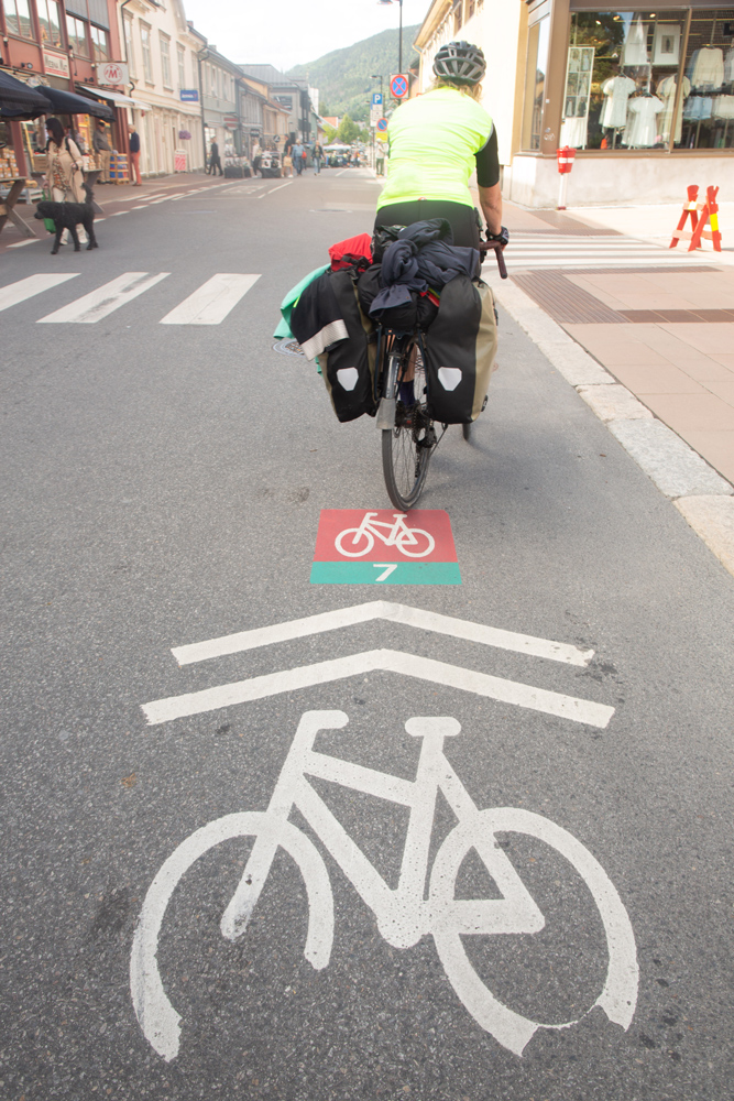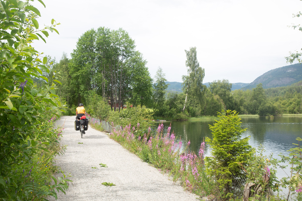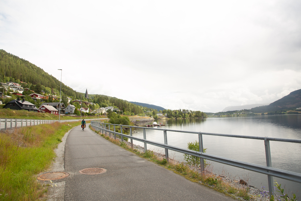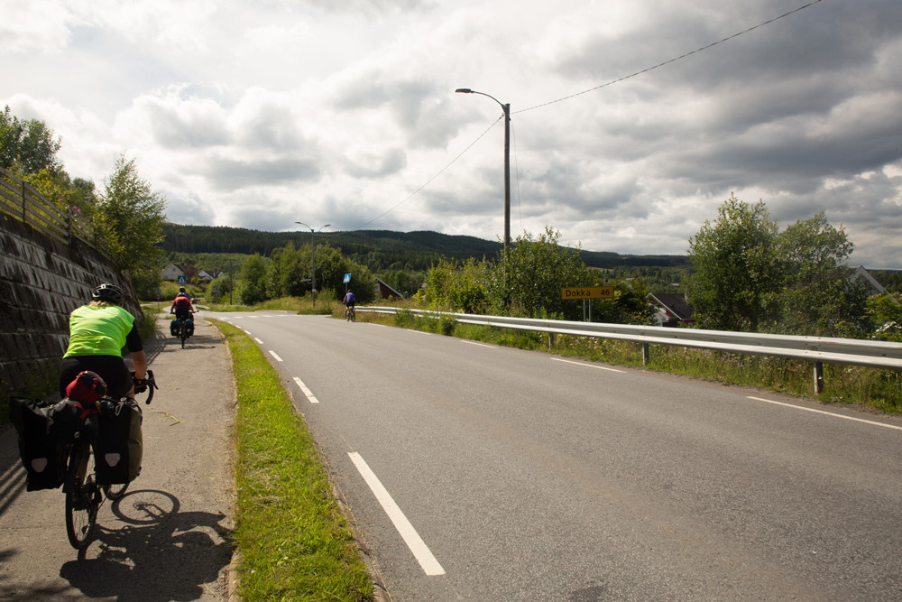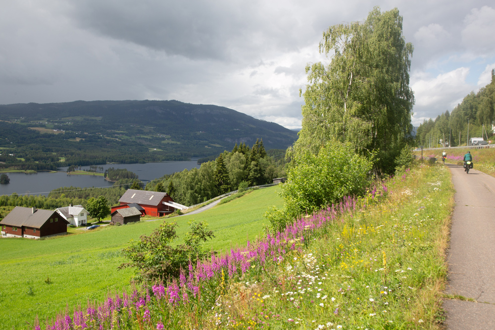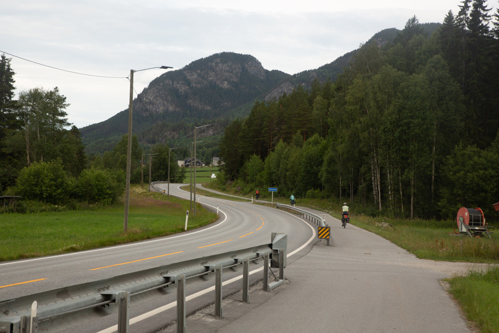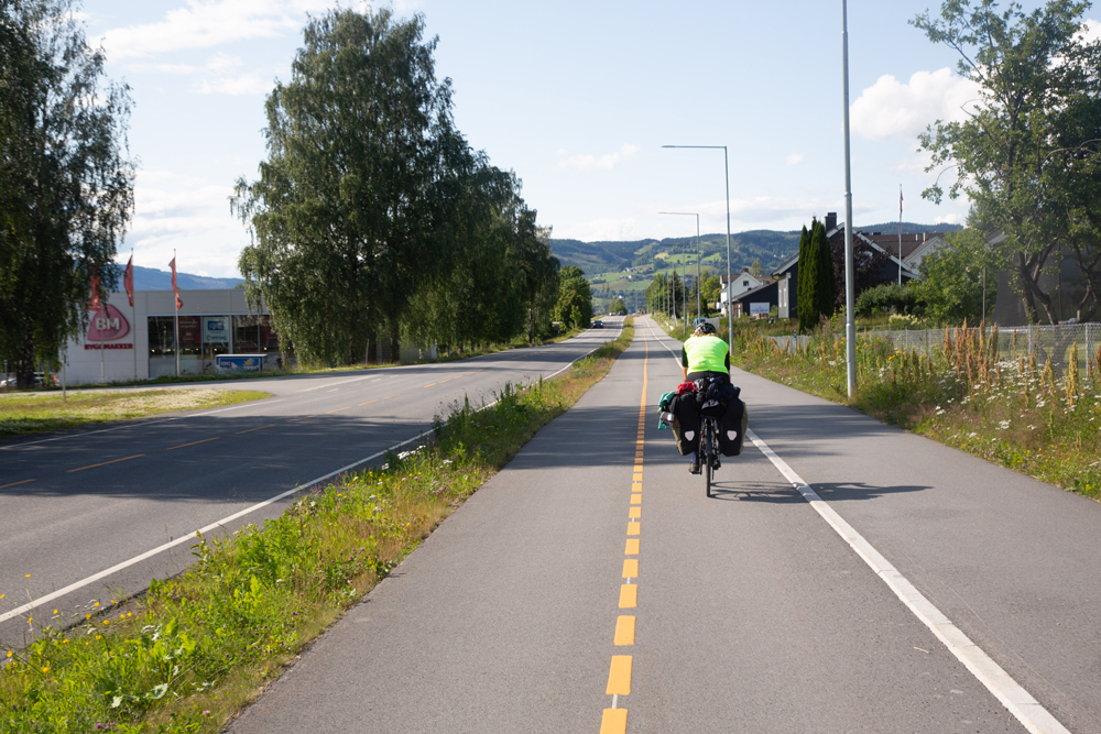 Bike bags stored and all packed we pulled away for a 2 week tour of inner Norway. Immediately the state of Norwegian cycle paths became apparent because there were bike paths everywhere along the edges of the road protected by a verge.