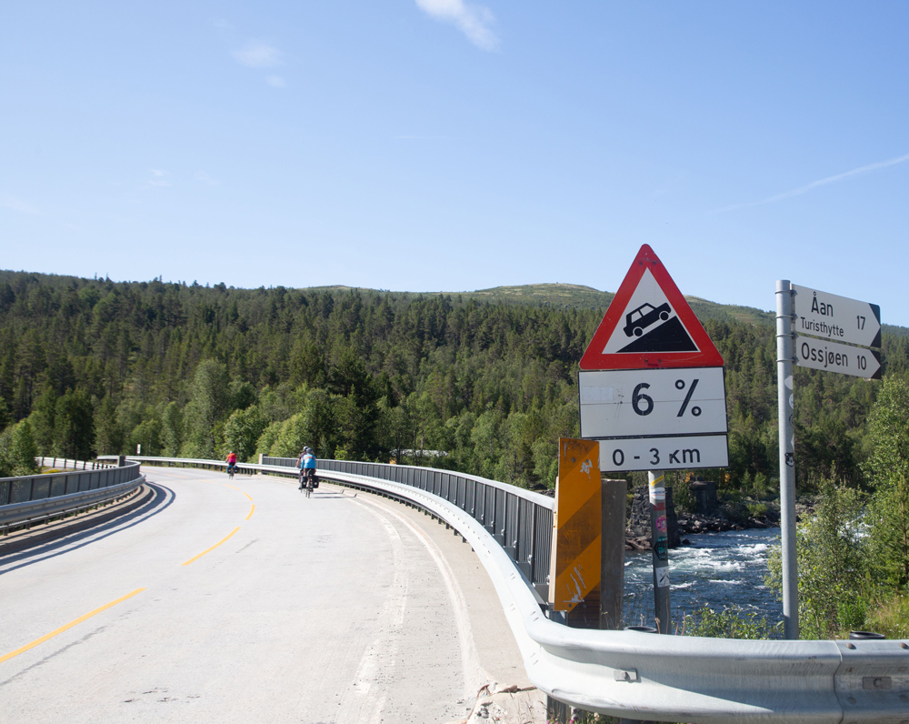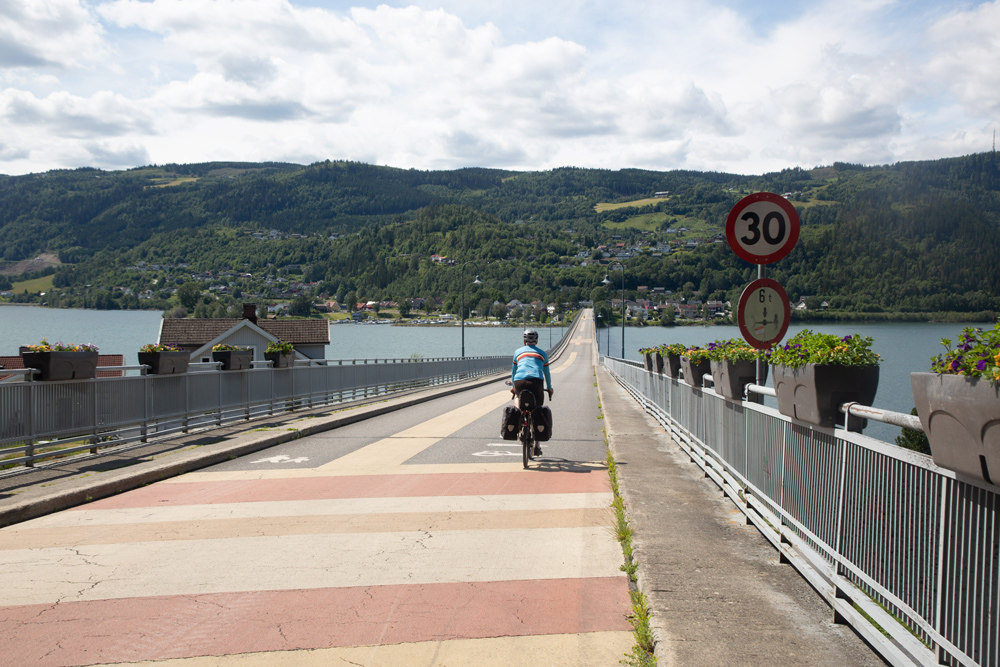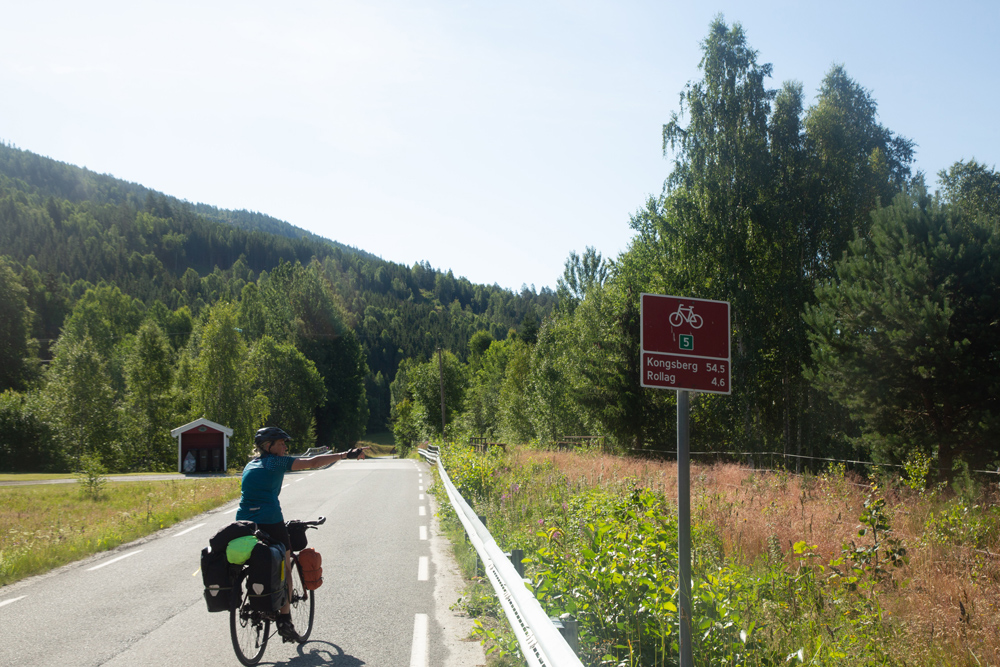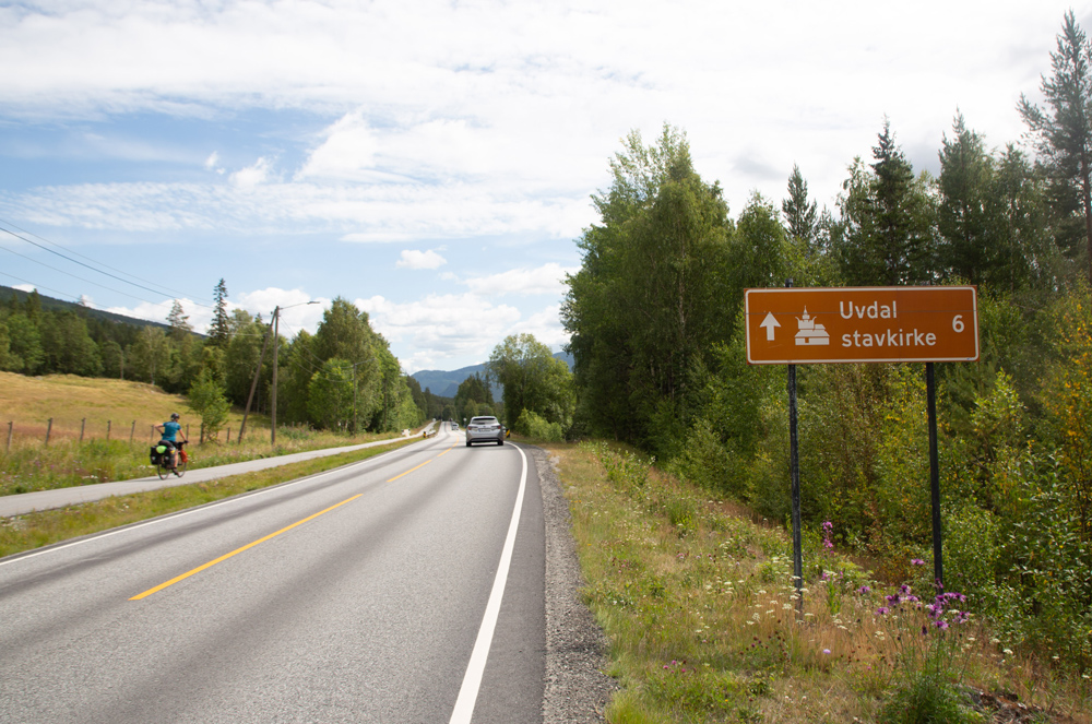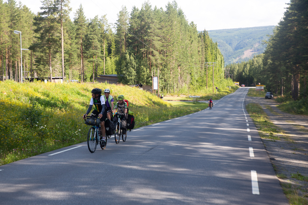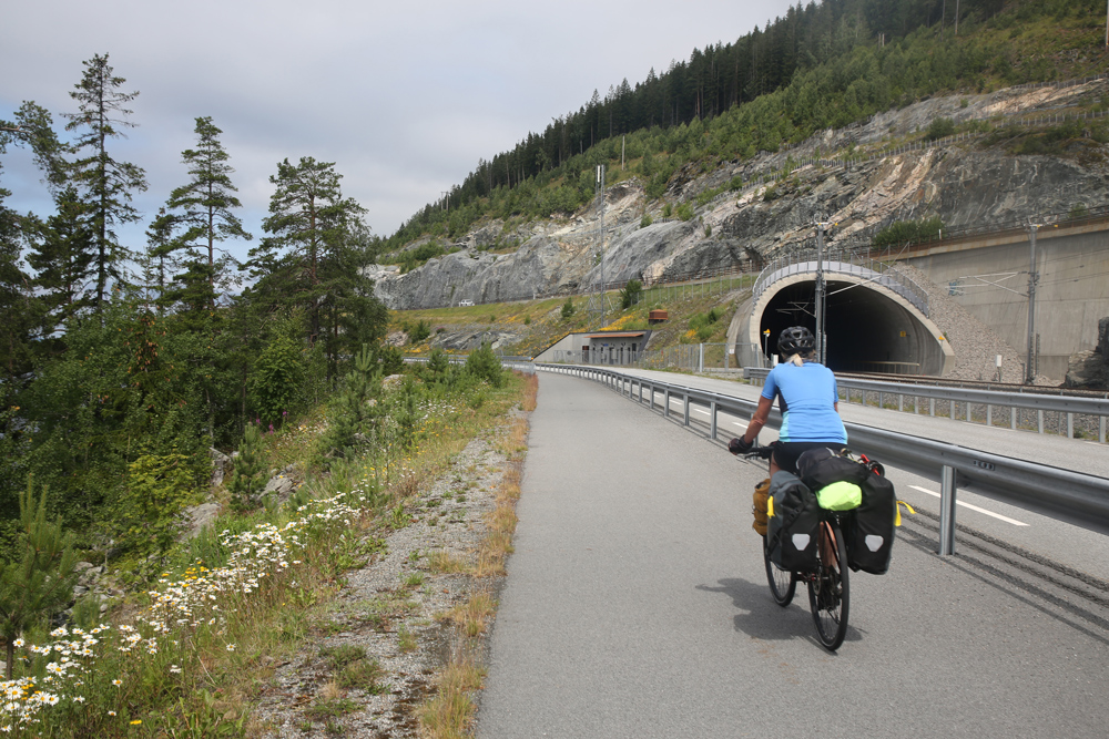 Bike bags stored and all packed we pulled away for a 2 week tour of inner Norway. Immediately the state of Norwegian cycle paths became apparent because there were bike paths everywhere along the edges of the road protected by a verge.