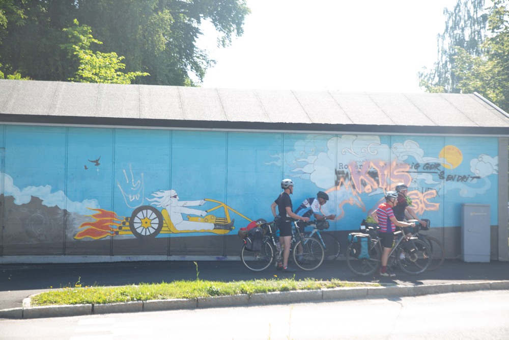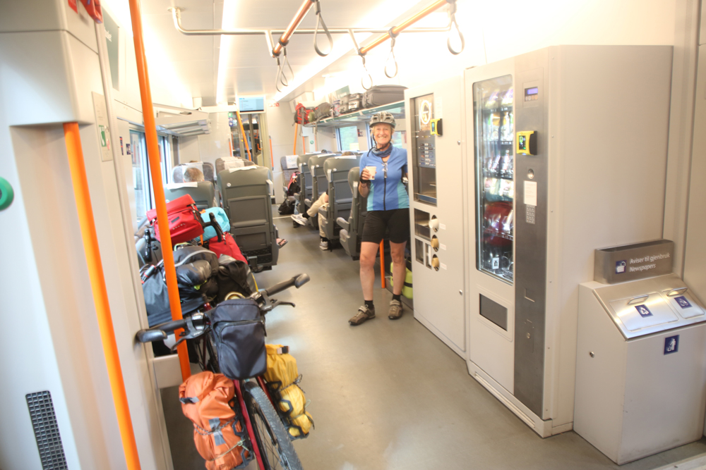 Kongsberg was the meeting point and also the place that Siobhan had arrived at on the coach with her damaged bike. Set to catch a train or bus, we would see her again in Oslo. The Intersport shop did a trade in brake pads for Keith, witness to the downhills and gravel of the past 12 days.