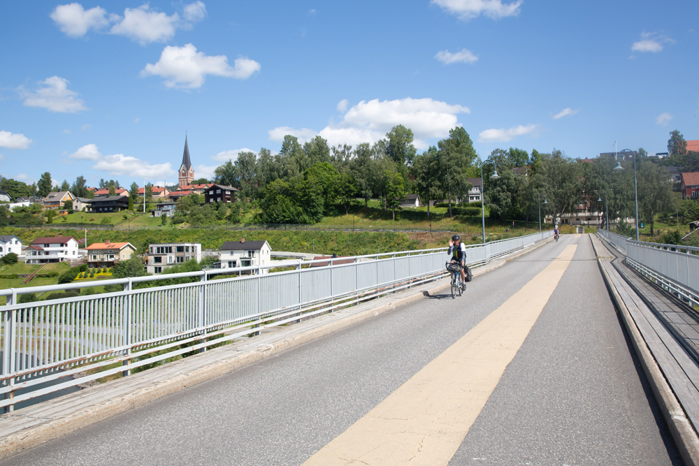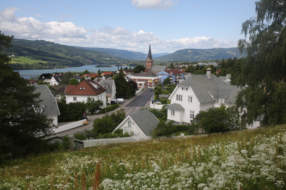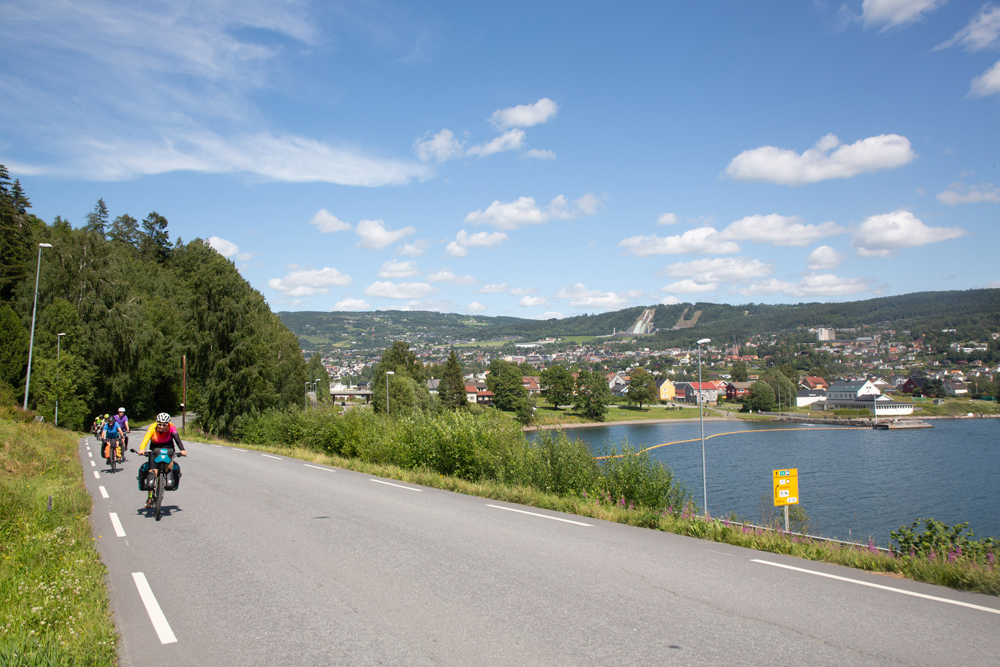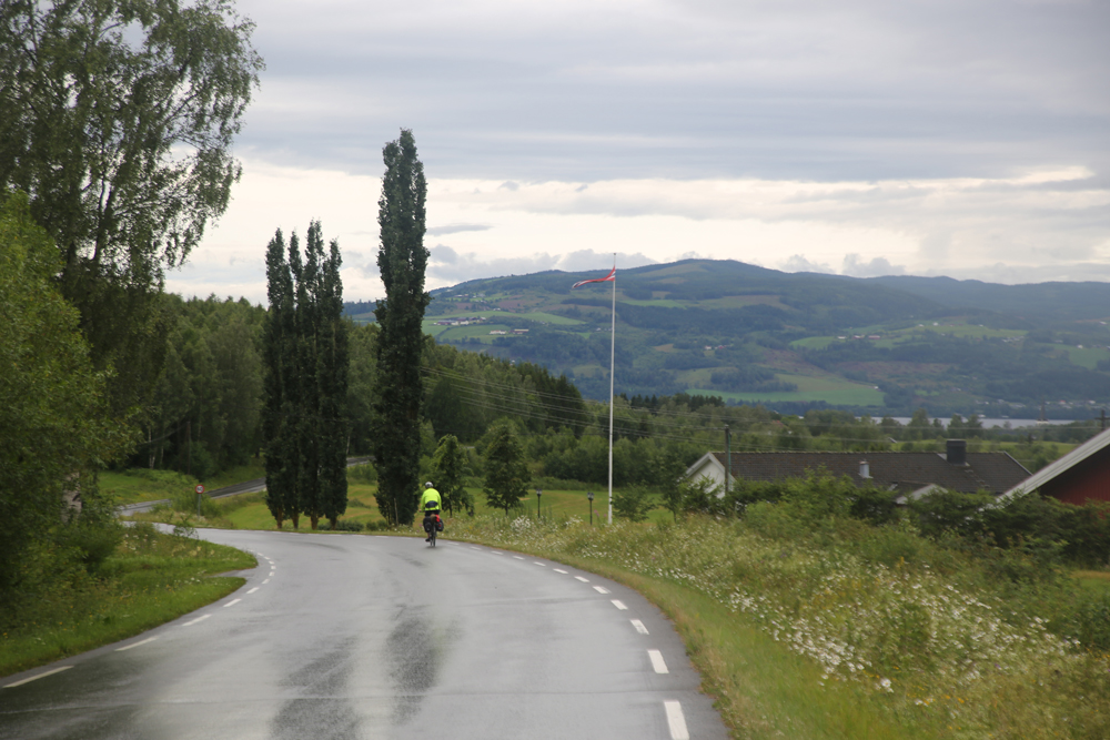 An overcast day would take us through Lillehammer but first the challenges of national cycle route 7. It started with a steepish climbs through agricultural fields to descend back down to the lake and the pretty white steepled church at Ringsaker.