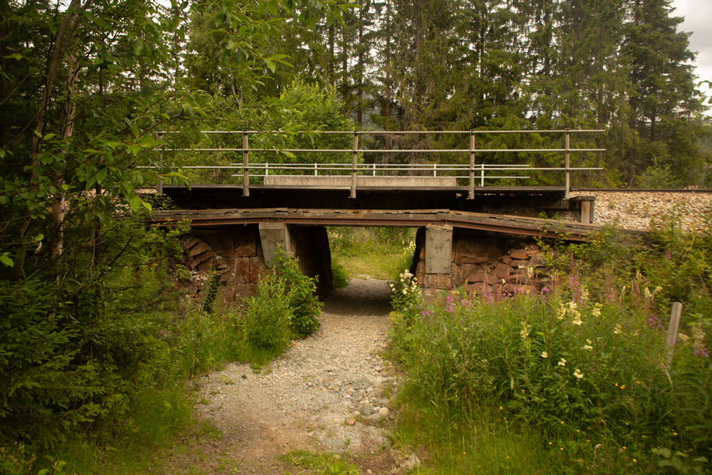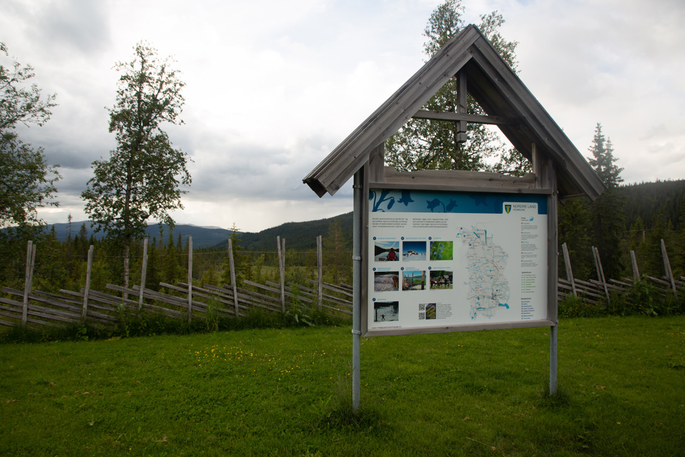 Reaching a summit at 840 metres, it dropped 100 metres to climb to 840 again with an encore of 910 for good measure. The top marked by an information board fenced in and flat was the perfect wild camping spot, but we were on a mission descending towards Dokka through woodland. A 17km to go was greeted with torrential rain, a flattish section and a final descent that seemed to go on forever led into Dokka.
