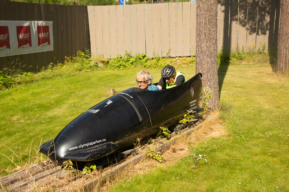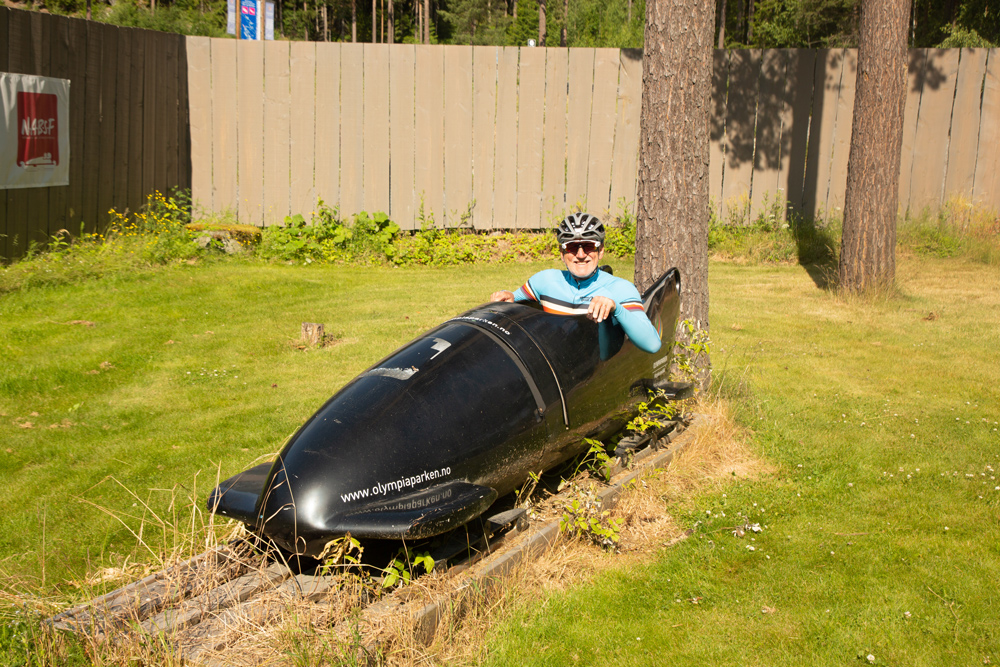 Along the east side of the river, over the bridge and onto the east side. Gloriously quiet it passed forests and farmland. However the Olympics were never far away as the Olympic bobsleigh run appeared complete with old 2 man bob, so who were we to refuse a photo opportunity?
