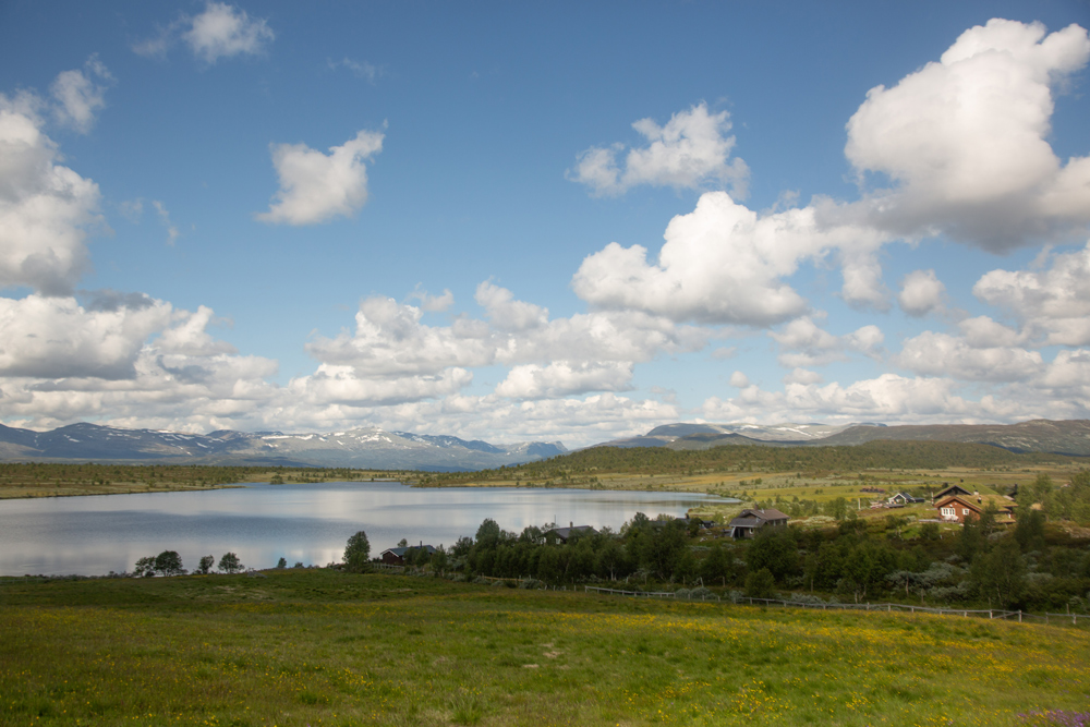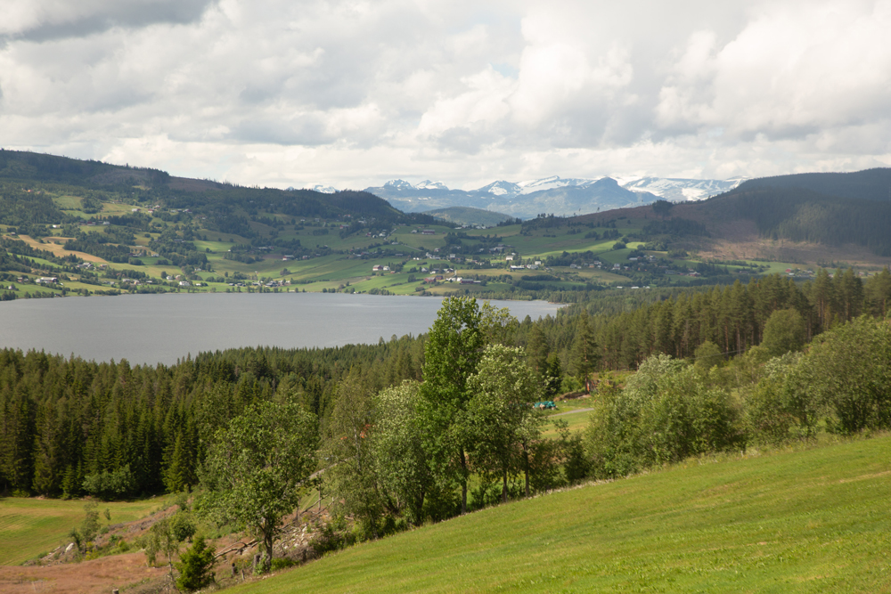 The climb to Beitostolen was gradual with the snow covered Jotenheims gradually coming into view. As usual we had friendly advice from Norwegians in this case a 1976 diesel Mitsubishi driver who preferred his car to electric. A short diversion to Hegge stave church that was shut, before finally arriving at Beitostolen where we camped in a boggy area, made up for by amazingly clean bathrooms. Enchiladas and a glass of beer set us up for the next day.