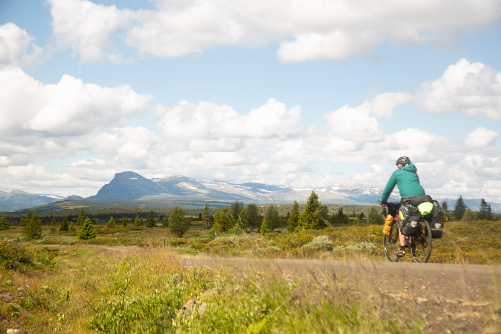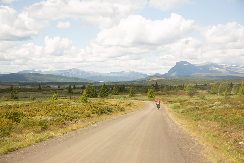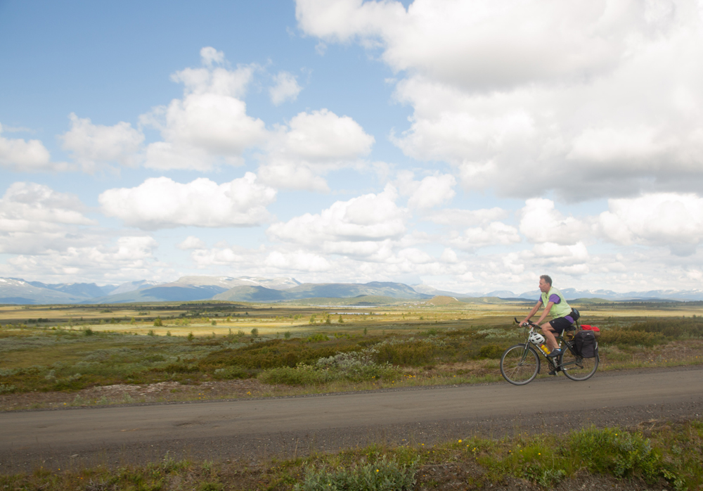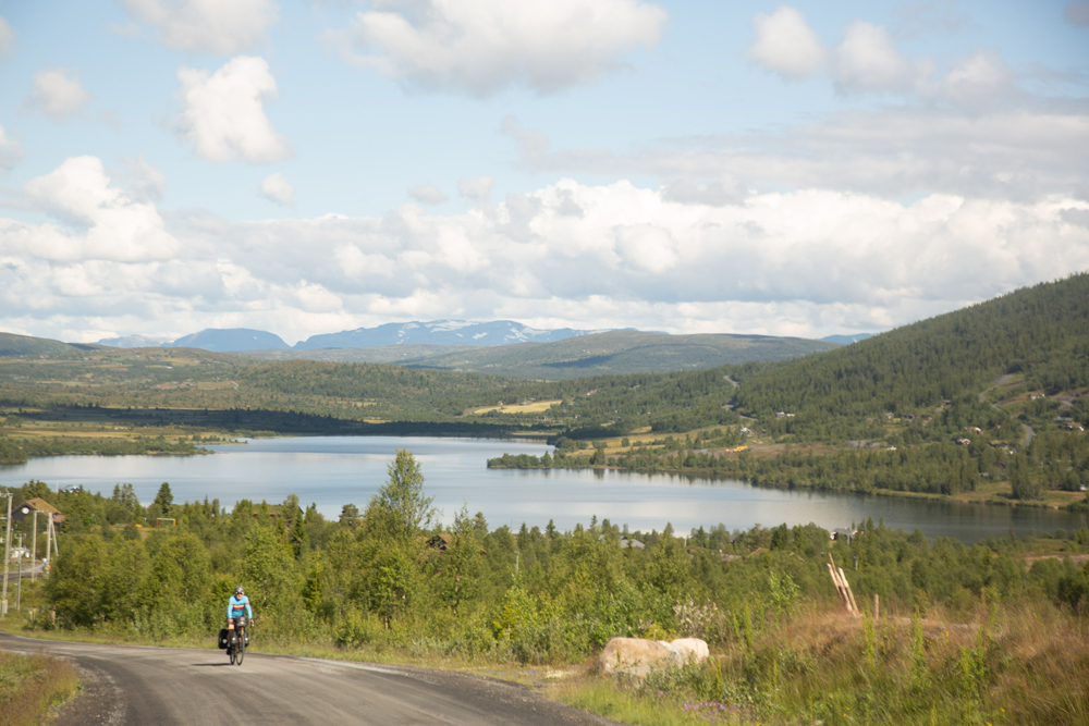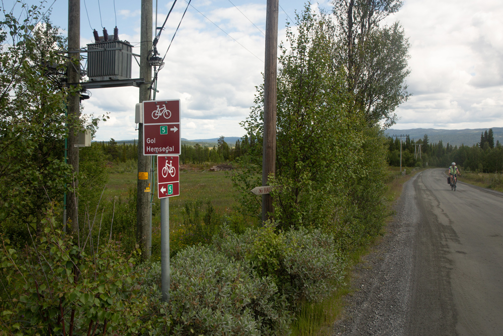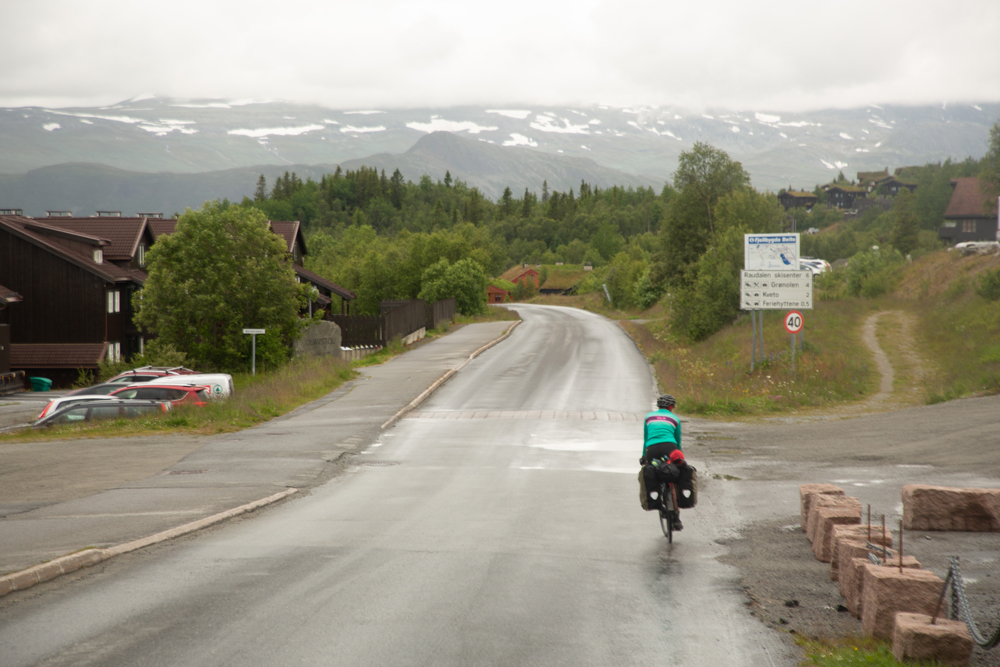 With the Jotenheim mountain range glowering down we left the boggiest campground ever and cycled out of Beitostolen accompanied by lots of hand cyclists. These glorious and long cycle paths have so many uses.