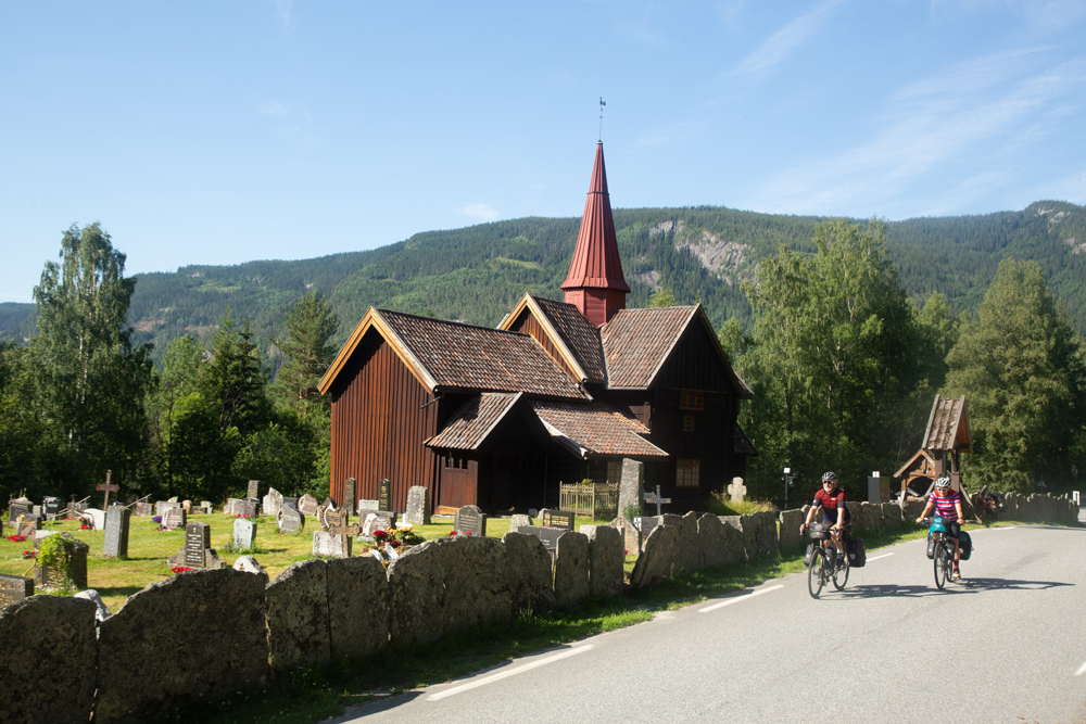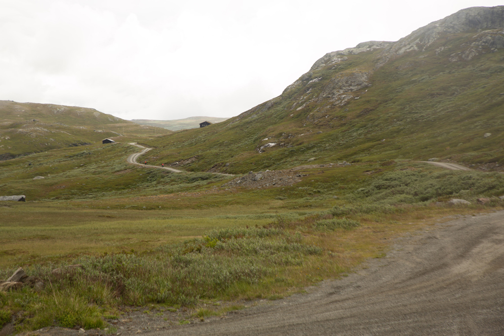 From that moment on, we decided to stick to the road, after all our impression of Norwegian drivers was invariably good and so it turned out as they patiently waited behind on bends and brows in the road. A climb and a descent past the pretty church in Hallingdal and the inevitable Kiwi led to quite a brutal 2km climb. Norwegian roads have a happy habit of telling you the grade and distance of the climb. 6% is reasonably relaxed, 7% grit your teeth, 8% for some is on foot, 9% well that’s the gravel roads.