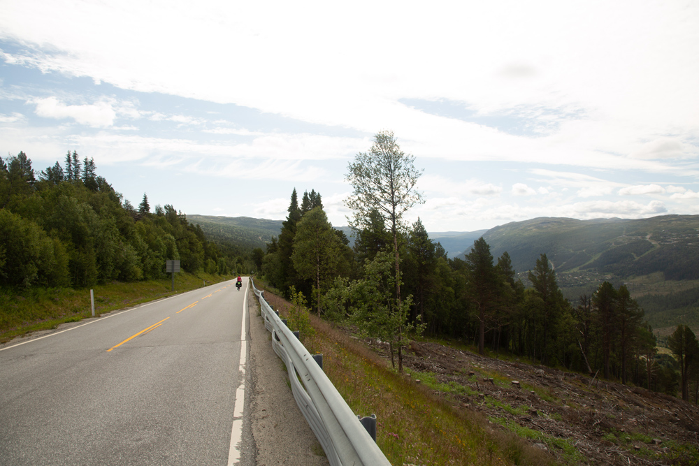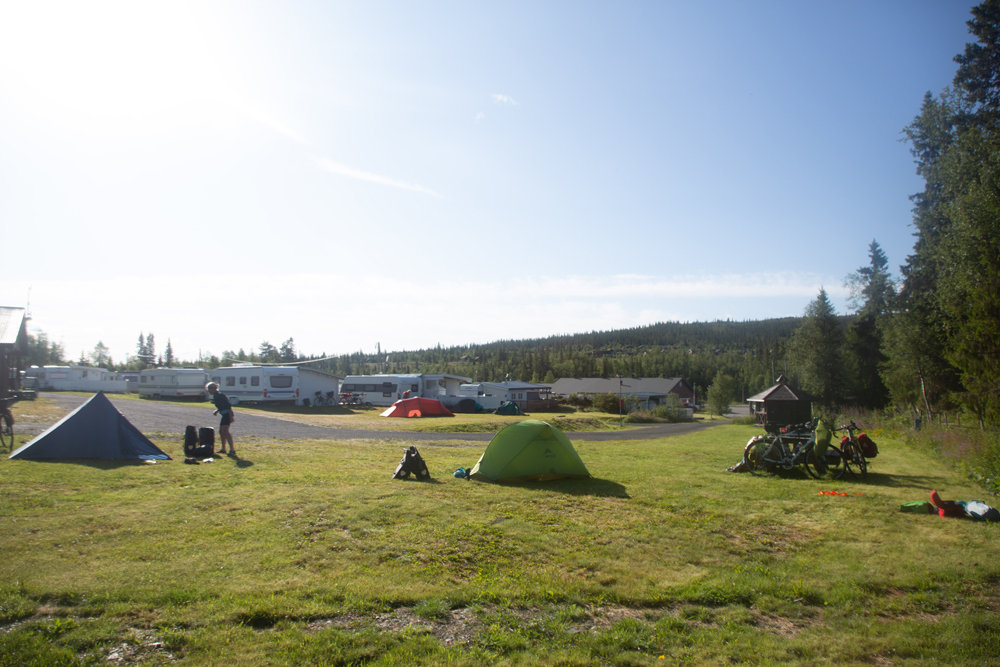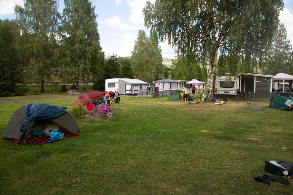It was late now as I exited Lillehammer to be greeted by Siobhan to share the final stage, passing a massive tunnelling effort and ski lifts for the winter season. Camped for the night at another Topcamp we shared pitches close to families with infant children who didn’t know the meaning of sleep in a season where neither did the sun.