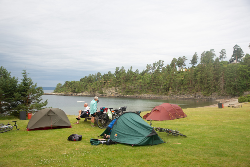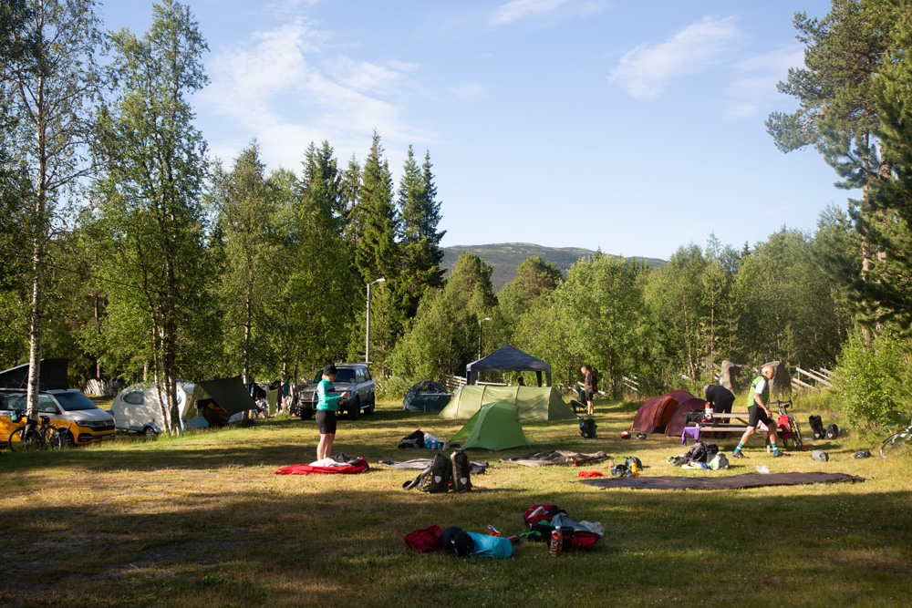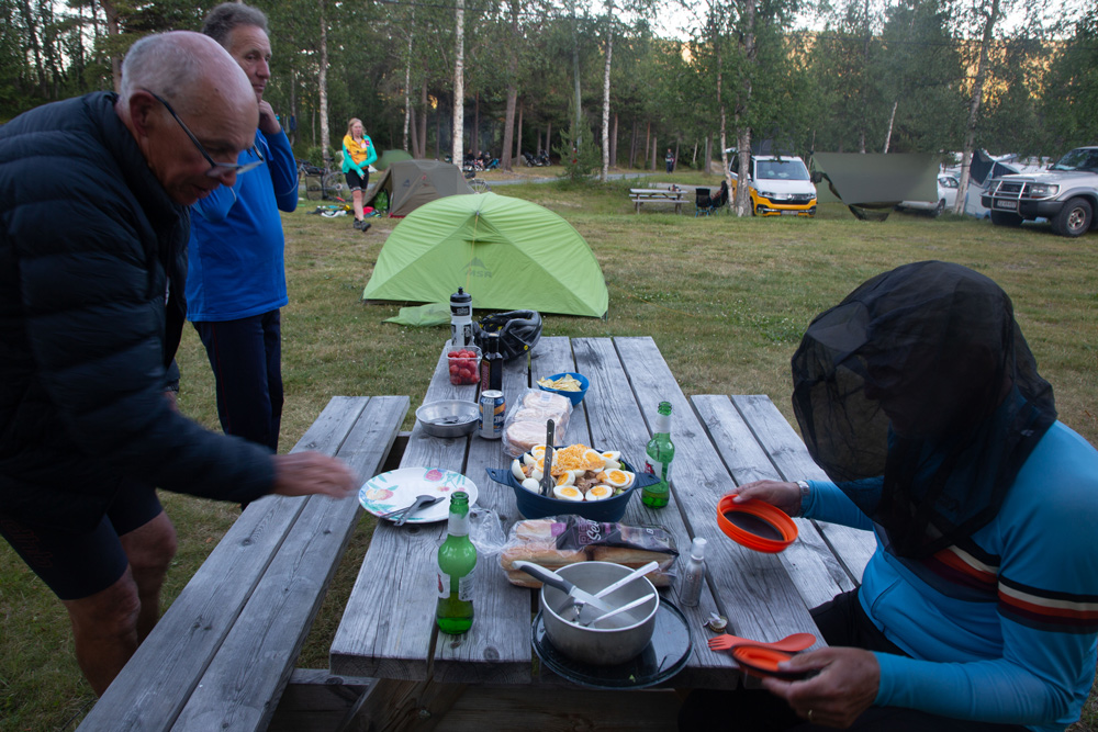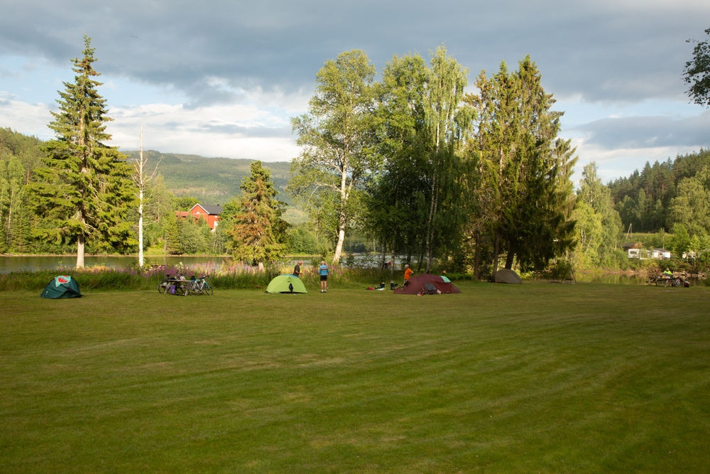 Crossing the top of Furnesfjorden took us to Topcamp, part of a chain of campsites, where a kitchen waited, keycards to use the bathroom and a small field in the corner where we pitched our small tents. Into the evening thunder and lightning struck as we tried to fend off a Swedish lady who kept telling us to sleep under cover rather than our tents lest we were changed to charcoal like her prized horse at home.