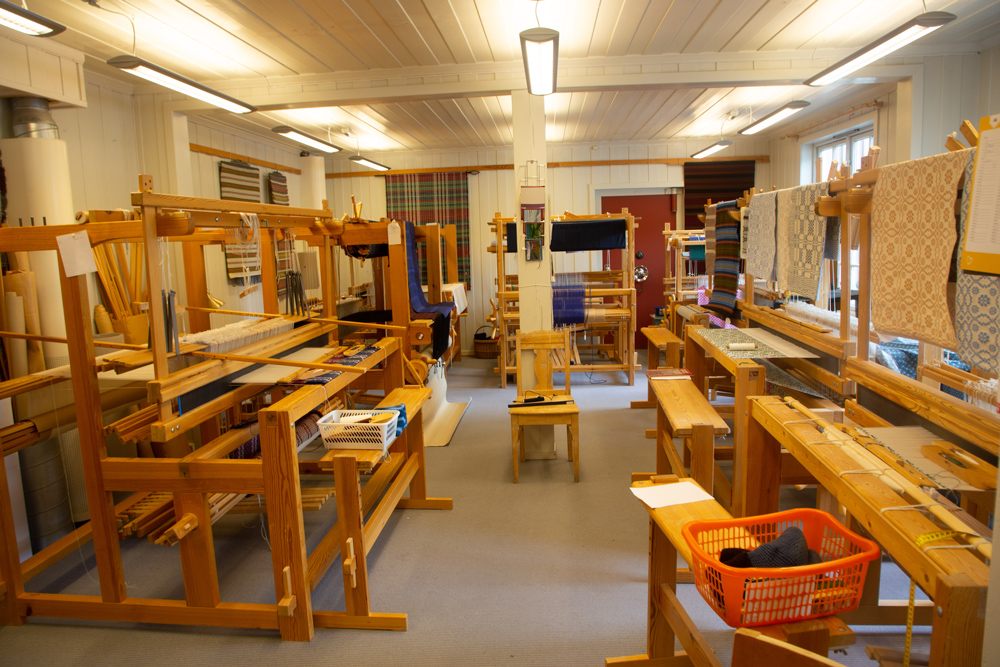 First stop Uvdal stave church, or so we thought. On the right was a magnificent and large stave church. On closer inspection it was built in the 19th century in the style of… it was also closed. Next door though lay what looked like a gift shop. Within was a local lady who was selling various versions of knitwear in a room next to 8 looms where the ladies met every Monday night to create their wares. She just accepted cash bemoaning the fact that everyone paid by card these days, but they would also take euros. The result, a moose covered toilet roll holder for Sharon and yes, she had the cash.