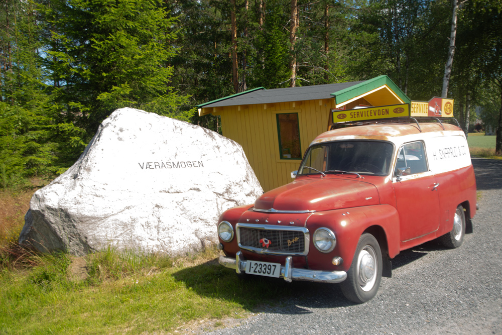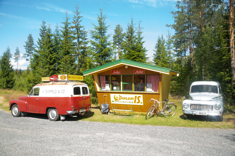 At one point a kiosk appeared. 2 old Volvos and a bicycle decorated the environs. Inside a mannequin stared out at the road and a freezer once full off ice cream sat unfilled in the wooden shed. From 1952 to the mid 1970’s it had functioned but now a roadside museum, where you could even get into one of the cars.