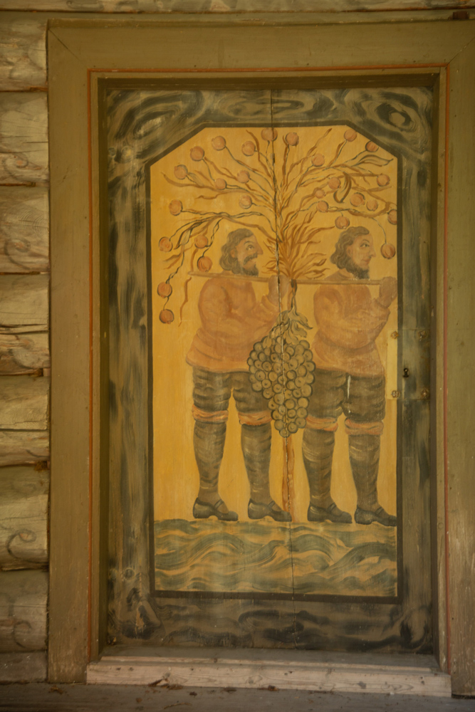 The stave church was 12th century, the outer door flimsy as this was merely the first entrance as here you left all your weapons. Guarded by an original door lay the decorations, a mass of flowers, colours and scenes from the bible, painted by 3 travelling artists in the 16th century of unknown names. The Adam and Eve scene was particularly striking. Apparent the better and grander the paintings the better it looked for the priest. I asked if the population was bigger in years gone by, the answer was no, just 120, so government support was thought to have been needed. The guide was informative and as usual for Norwegians her English was excellent.