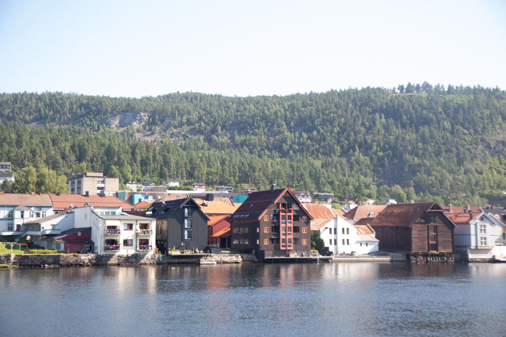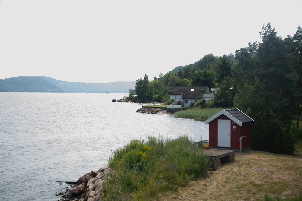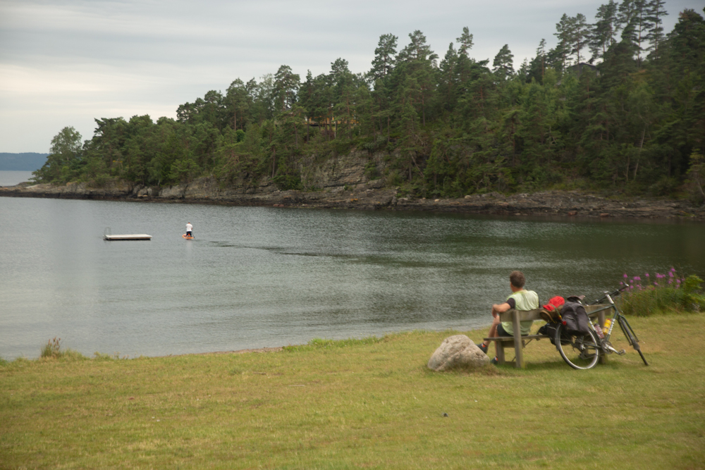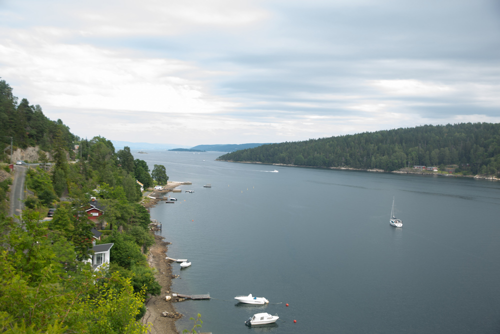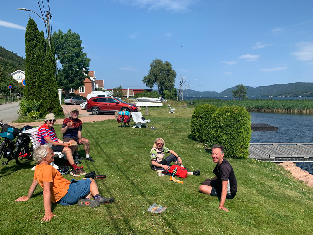 The sun continued to shine as we set out from Hoksund. Route 4 seemed a better choice o the north of Drammenselva an extension of the Fjord. Wonderful bike paths as usual, well signed throughout and flat riding, taking us along the valley. Arriving at Drammen, a welcome coffee and cake stop with excellent coffee but stale cinnamon buns. Over the bridge following the coastal road along route 319 with hills on the right and Drammensfjorden on the left. With temperatures approaching 30 degrees there were a lot of Norwegians sunning themselves along the shoreside whilst the views and general quietness of the road was amazing, thoroughly recommended.