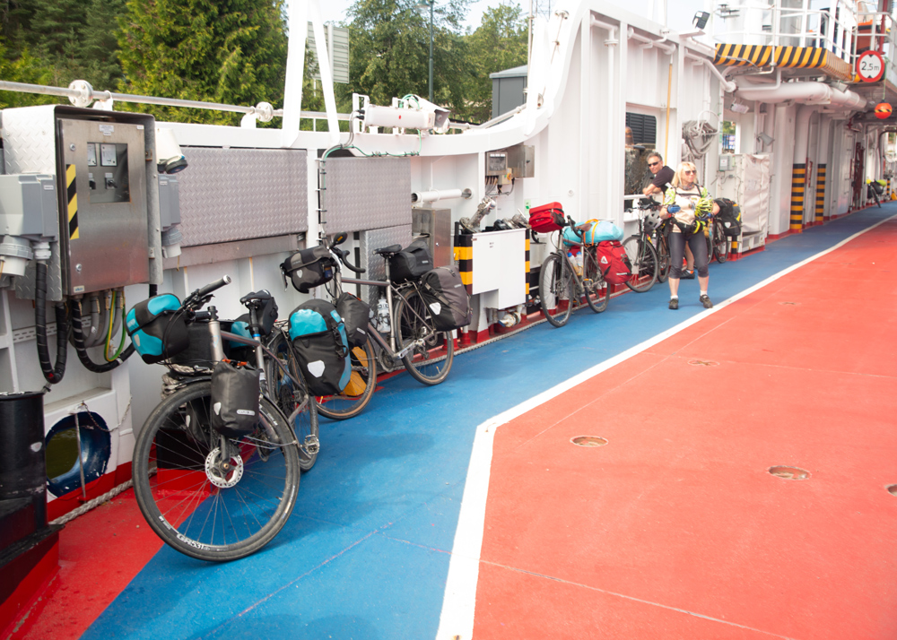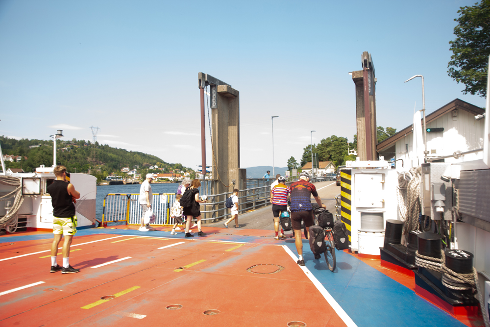 Arriving at the ferry terminal, we stocked up with food at one of Norways many supermarkets. These seem to be everywhere, always well stocked with anything you could want including a big green grocery section. The ferry ride was shorter than the time to load, an all electric affair on a roll on, roll off affair and even better it was free.