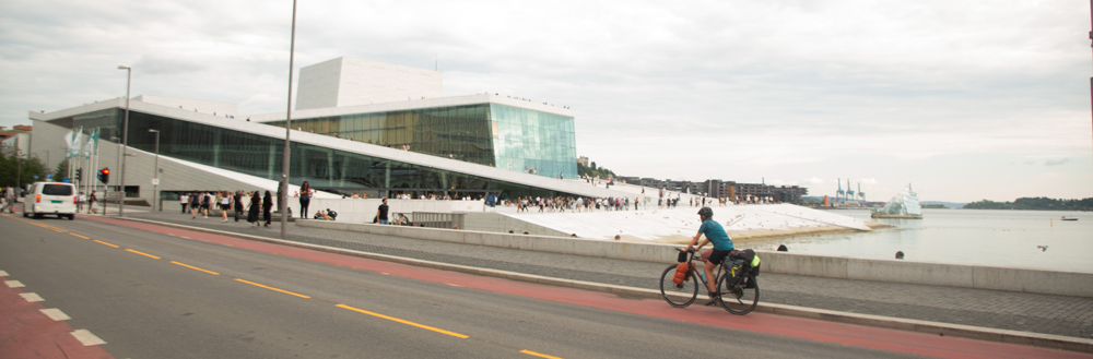 At 16:30 we entered the outskirts of Oslo. We followed route 1 to the centre. Along quiet lanes, cycle paths and around building works we went, it was a brilliant way to get to the centre. A final climb to the campsite and the end of the day at a campsite overlooking the city.