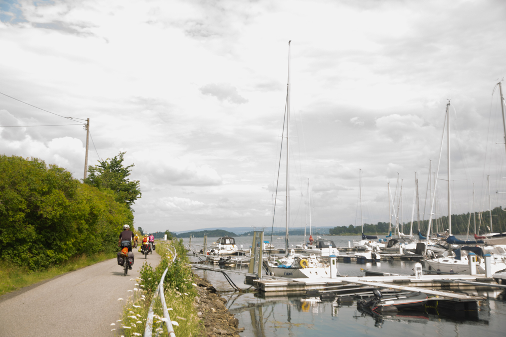 Our last days cycling would almost complete the circle. Setting out from the sea, the only way was up. Back along the track to head right and along the coastal road. It sounds idyllic and in regards the views it was, large marinas, small islands and yachts in full sail on the fjord. However, it was pretty brutal in regards the climbing as it was either up or down. No sooner had you descended, the road climbed again to between 60 and 120 metres, it was hard work.